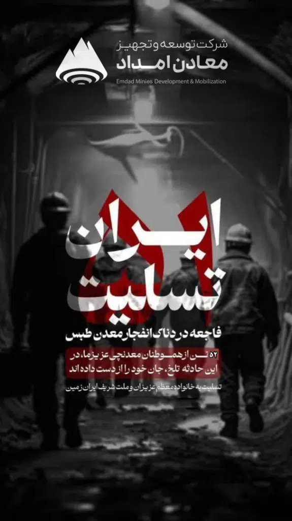 با نهایت تأسف و تألم، حادثه دلخراش انفجار معدن زغال‌سنگ طبس را که جان تعداد زیادی از کارگران زحمتکش را گرفت